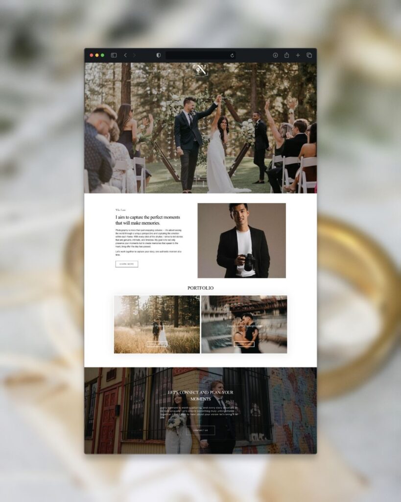 Built around a black-and-white visual foundation, this website keeps the focus on photography. Clean layouts and restrained design choices allow wedding stories and special moments to take center stage without distraction.
